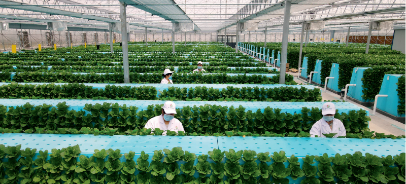 工作人员在肥东县安徽现代雾耕农业科技示范园植物工厂里进行日常管理(2022 年 4 月 20 日摄) 周牧摄 / 本刊