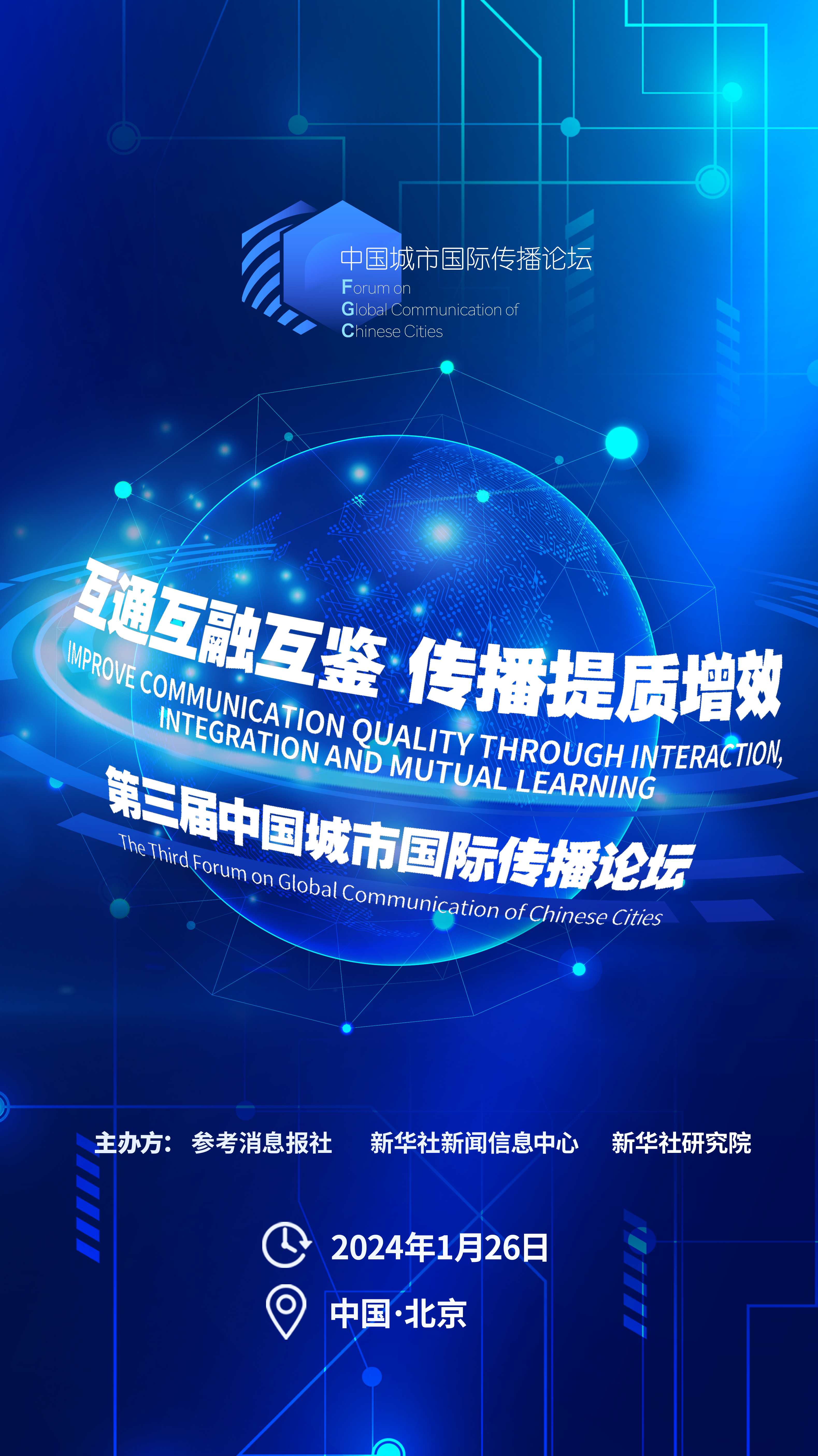 1月26日,第三届中国城市国际传播论坛在北京举行。本届论坛的主题是“互通互融互鉴、传播提质增效”。地方宣传部门负责人、智库专家、媒体人士等100多位嘉宾共聚一堂,为城市加强国际传播能力建设、全面提升国际传播效能集思广益、建言献策。