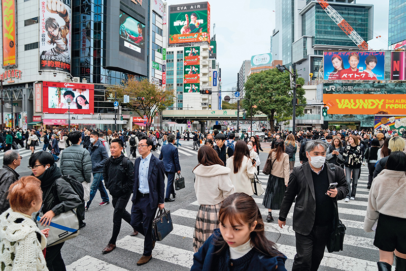 人们走过日本东京涩谷车站前的十字路口(2023 年 11 月 15 日摄) 张笑宇摄 / 本刊