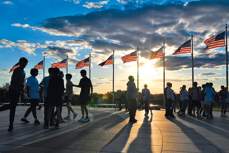 在美国华盛顿,人们聚集在华盛顿纪念碑前(2025 年 10 月 8 日摄) 李睿摄 / 本刊