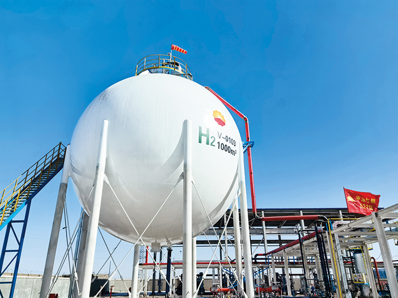 中国石油玉门油田分公司建成的可再生能源制氢示范项目储氢罐 新华社发(玉门油田供图)