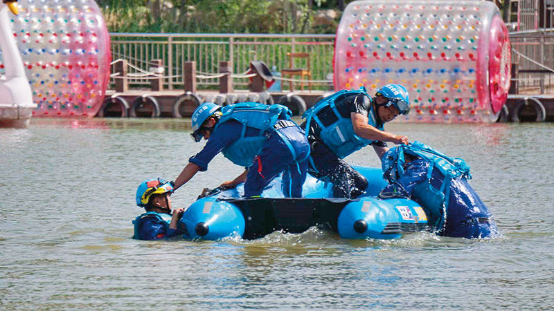 救援工作不能仅凭一腔热血,蔡杰庆深知水下环境比想象要复杂得多。当地缺乏完善的业余培训体系,他在工作之余四处求学,前往多地学习冲锋舟驾驶、绳索打结、医疗急救等应急救援专业技能。平日里,他积极参与体能训练,在一次次负重奔跑中提升体能。