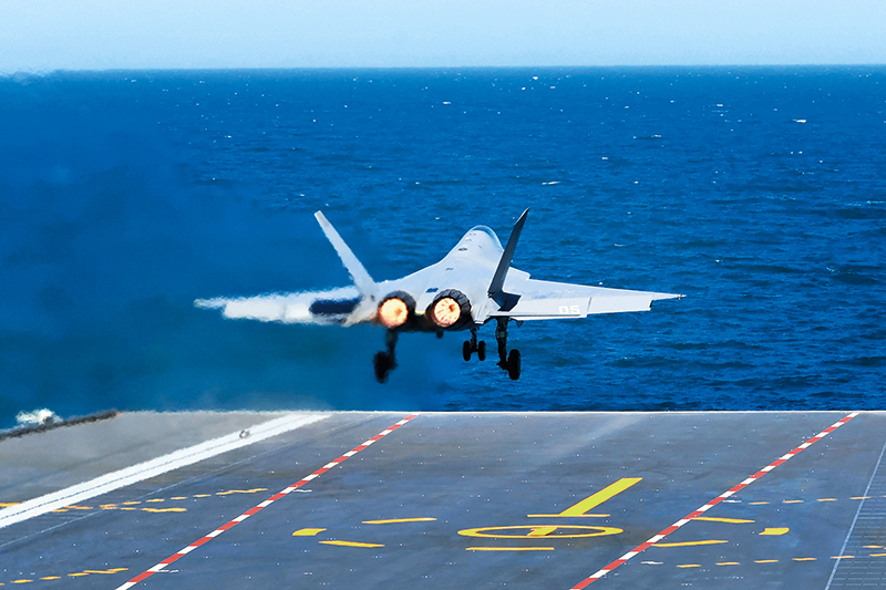 歼 -35舰载战斗机在福建舰电磁弹射起飞 琚振华摄 / 本刊