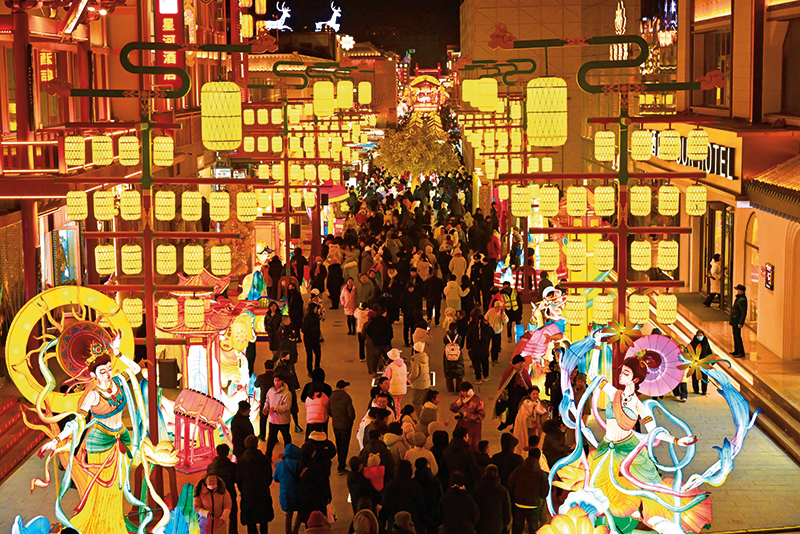 游客在甘肃省敦煌夜市商业街游览(2026 年 1 月 1 日摄) 新华社发(张晓亮摄)