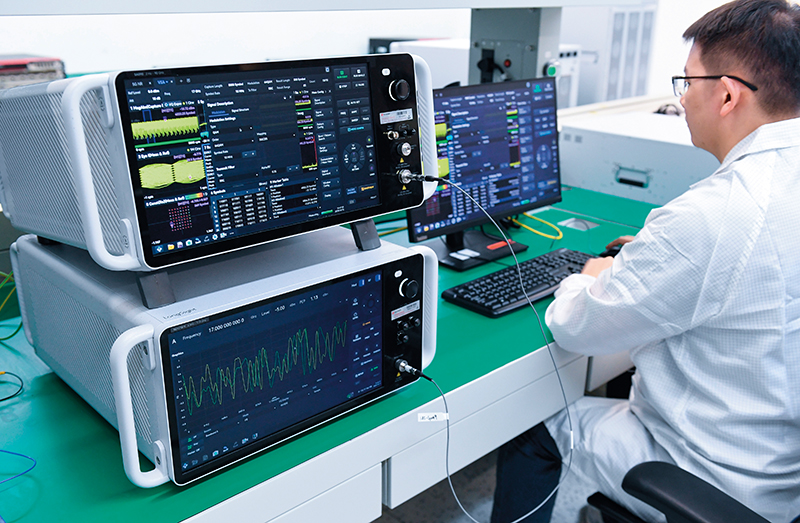 深圳市万里眼技术有限公司实验室人员正在进行低轨卫星通信测量(2025 年 10 月 13 日摄)毛思倩摄 / 本刊