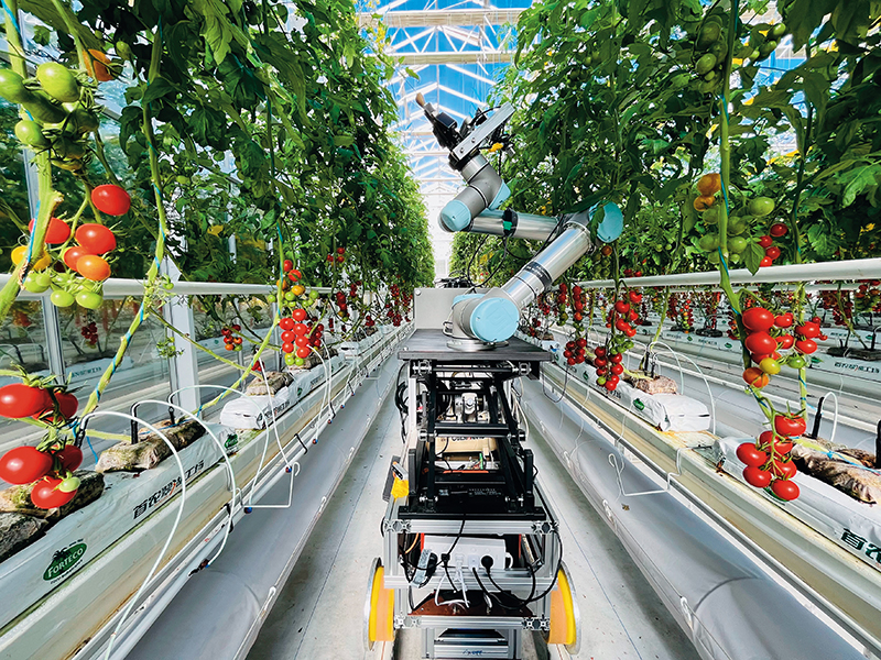 在位于北京市的一个现代化商业温室中,智能育种机器人正在进行番茄自动杂交授粉操作(2024 年 11 月 29 日摄) 新华社发