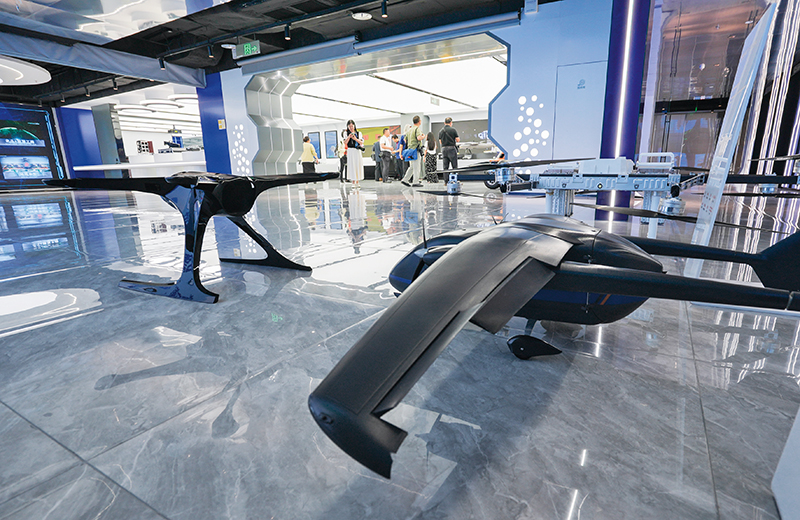 在位于无锡的长三角空间信息数字产业特色示范园,观众在观摩企业设计生产的无人机模型(2024 年 9 月 9 日摄)杨磊摄 / 本刊