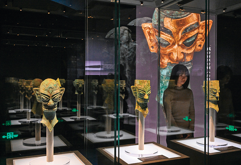 观众在北京中国国家博物馆举办的“双星耀世——三星堆—金沙遗址古蜀文明展”