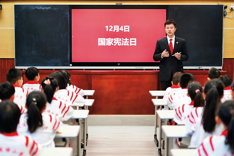 为学生们讲解宪法知识(2025 年 12 月 2日摄) 新华社发(杜鹏辉摄)