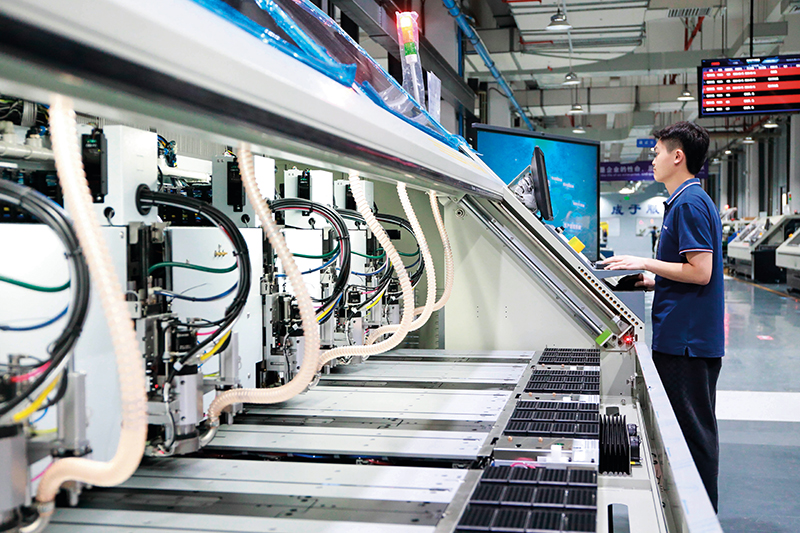机械臂挥舞穿梭,自动导引车有序送货,一条条全自动产线马力全开,一块块高端电路板快速下线……这是《瞭望》新闻周刊记者在位于江西省赣州市信丰县高新区的景旺电子科技(赣州)有限公司第五代智能化工厂看到的场景。